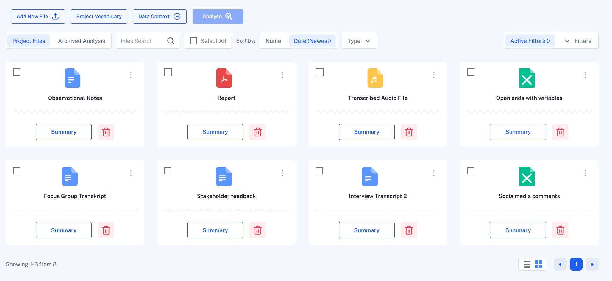 • Interview and focus group transcripts (DOCX, TXT, PDF)