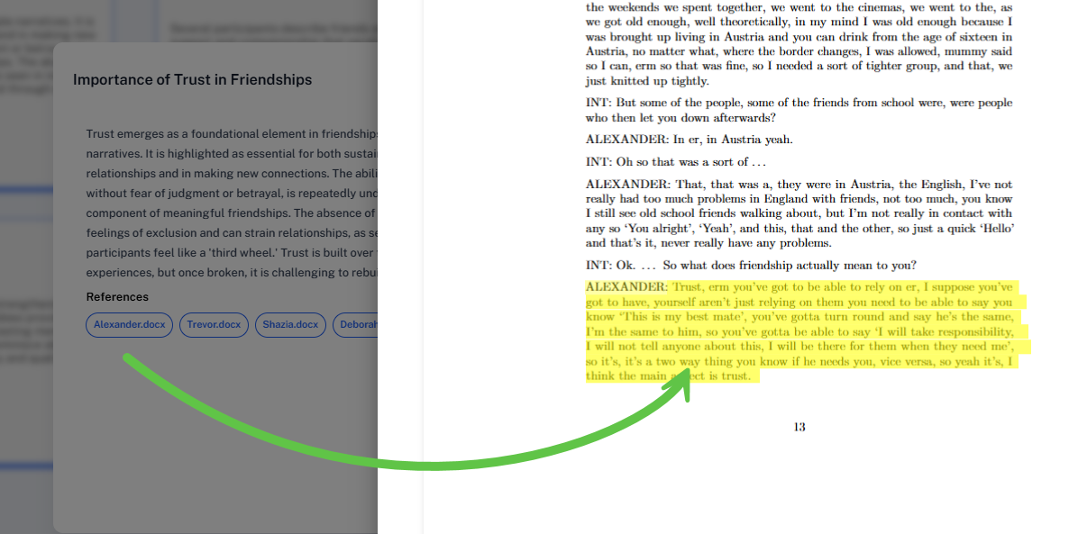 AI-assisted analysis introduces a dialogic process, where researchers and AI collaborate. By asking questions, exploring follow-ups, and validating findings, you achieve a level of engagement with the data that coding alone cannot provide. Instead of abstracting the data into tagged segments, researchers can focus on deriving meaning through iterative conversations with their datasets. The result? Insights that are richer, more actionable, and ready to meet client or stakeholder expectations.