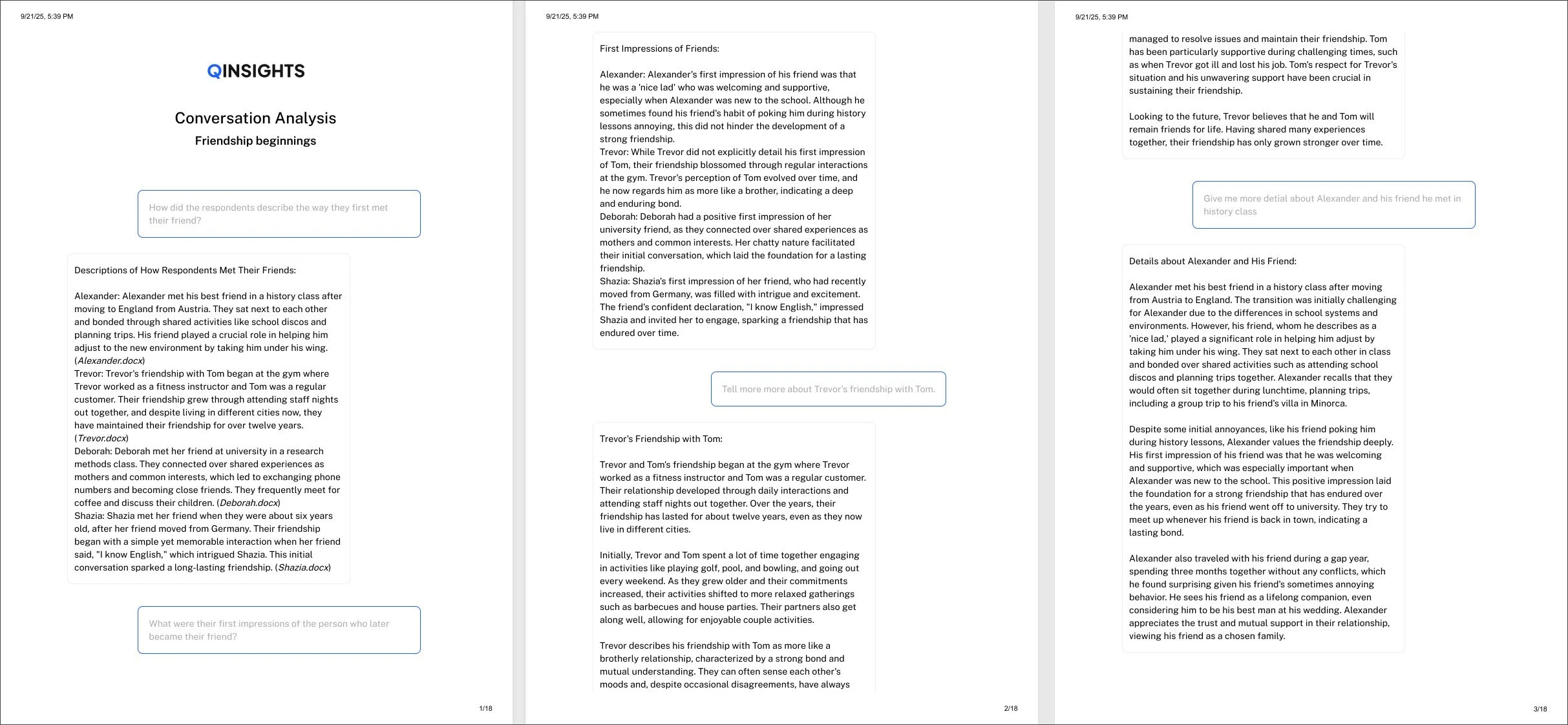Whether you are a researcher navigating strict academic standards or a market analyst racing against tight deadlines, QInsights empowers you to stay in control. You direct the AI—posing questions, steering the analysis, and ensuring the process aligns with your unique objectives.